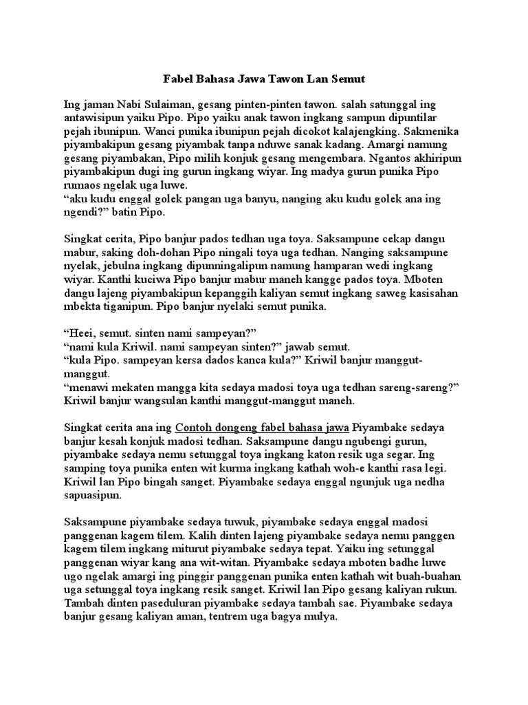 Fabel Bahasa Jawa Tawon Lan Semut Pdf